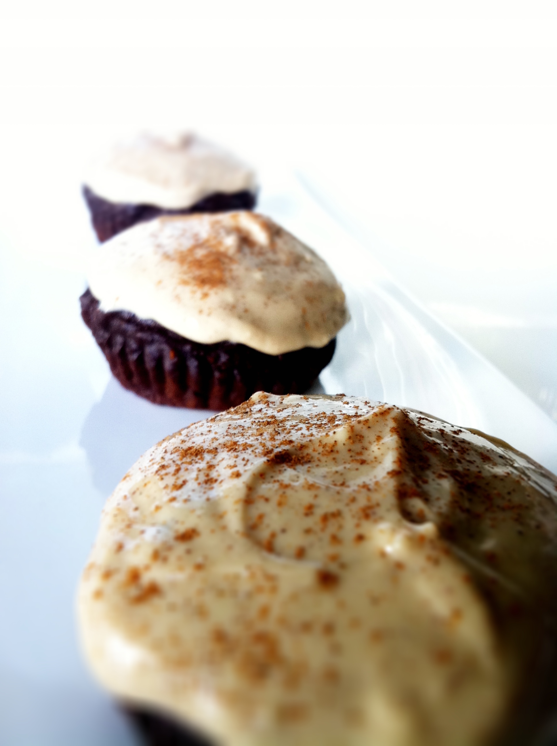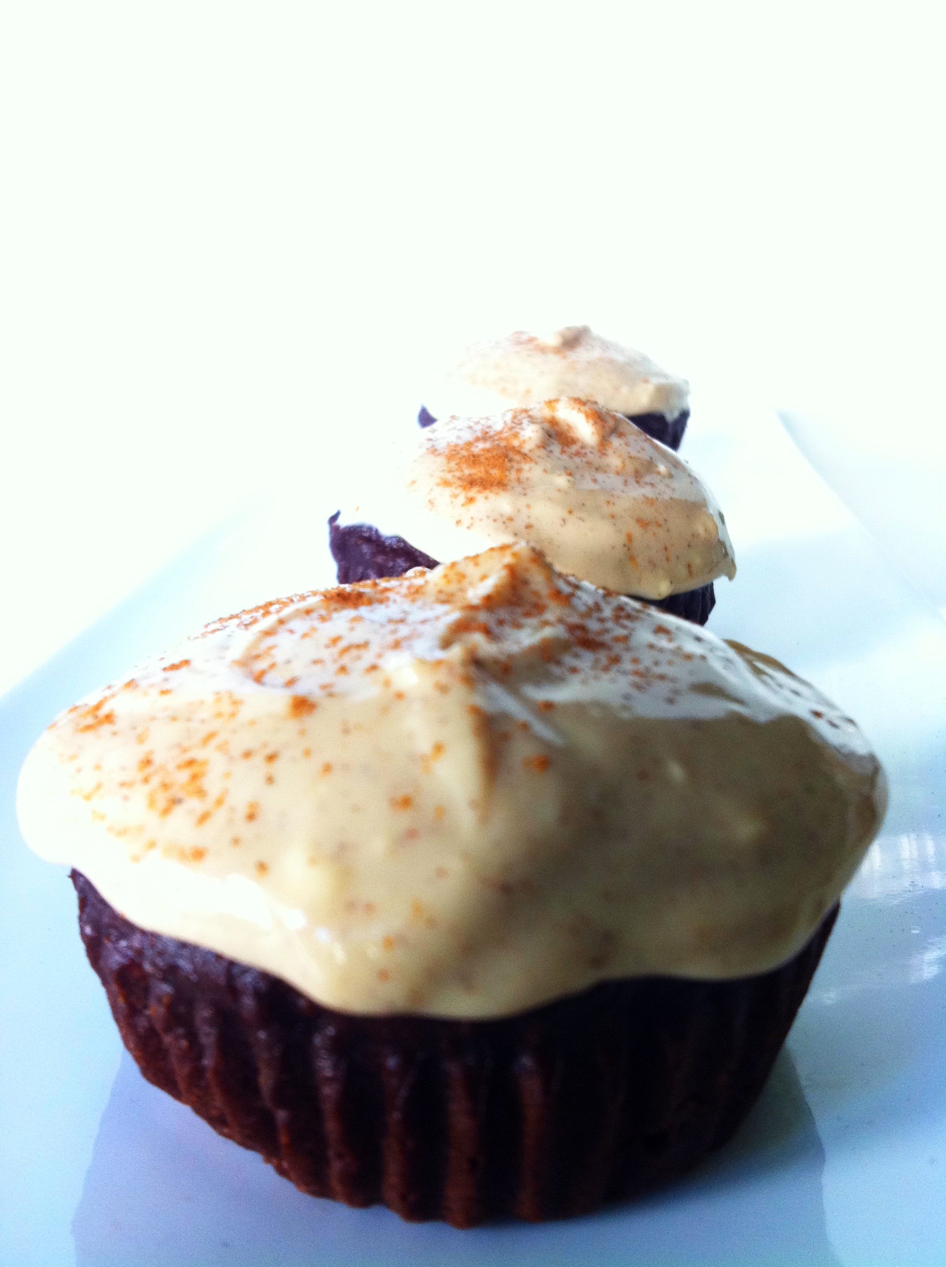 Skinny Dark Chocolate Cupcakes with Cinnamon Dolce Cream Cheese Icing
