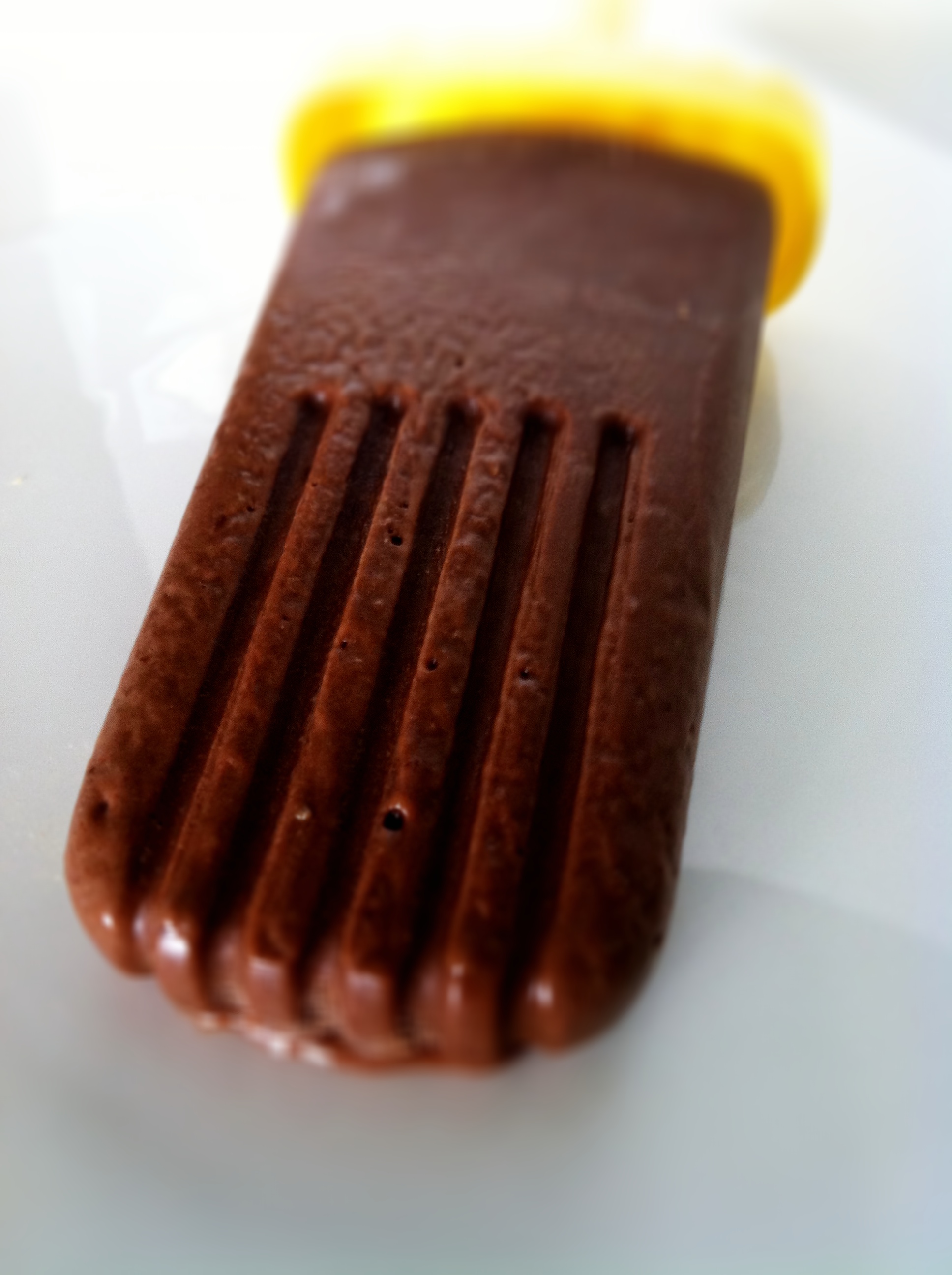 Tip – When fudgsicles are frozen and ready to eat place your popsicle holder under hot water warming all sides before removing the cover. This makes the fudgesicle come out smoothly.