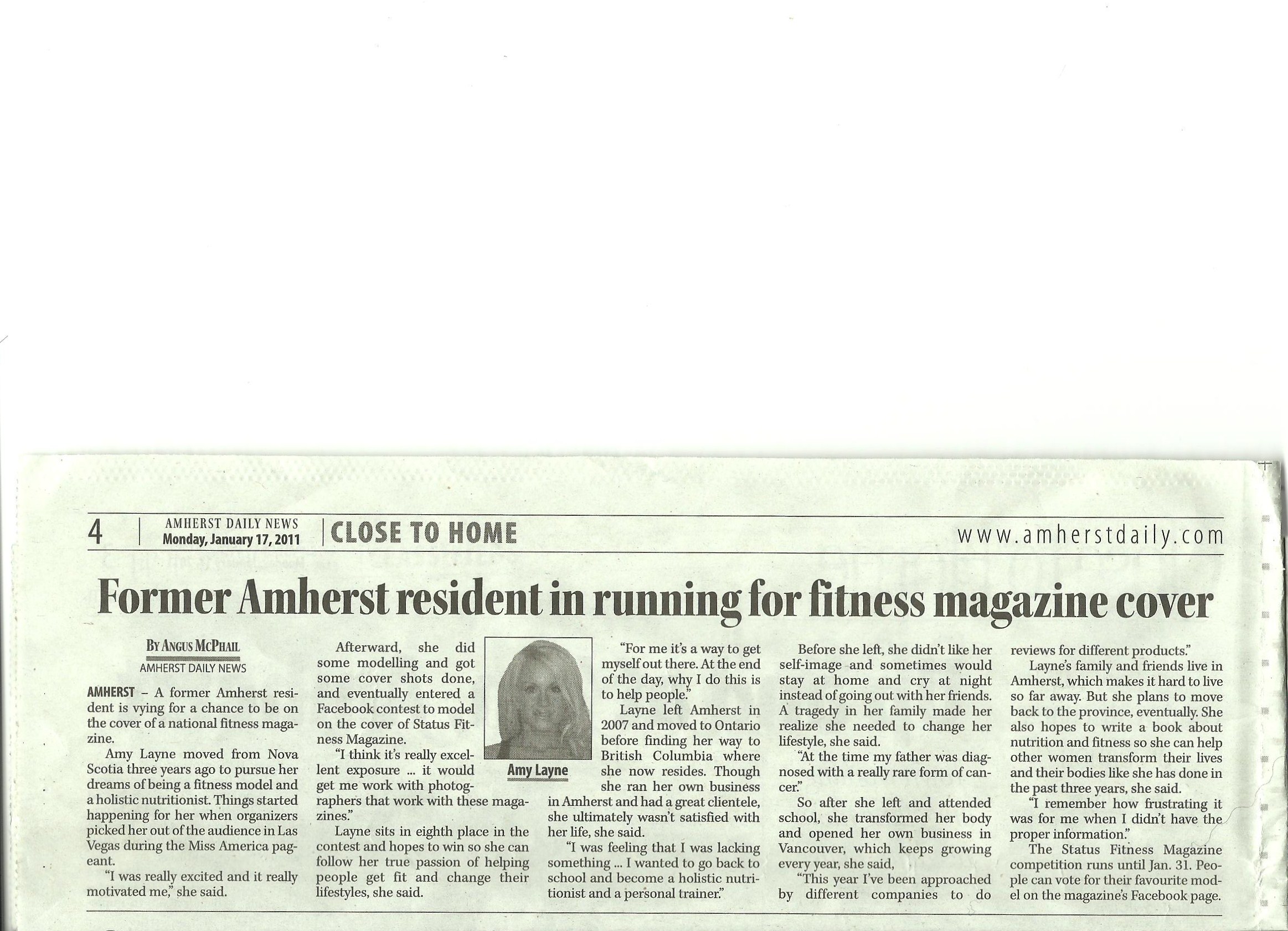 Thank you to everyone that voted for me over the last year. Many of you helped me get the word out. Thank you to the 2 papers that also featured my story. I am blessed to have such great people in my life.