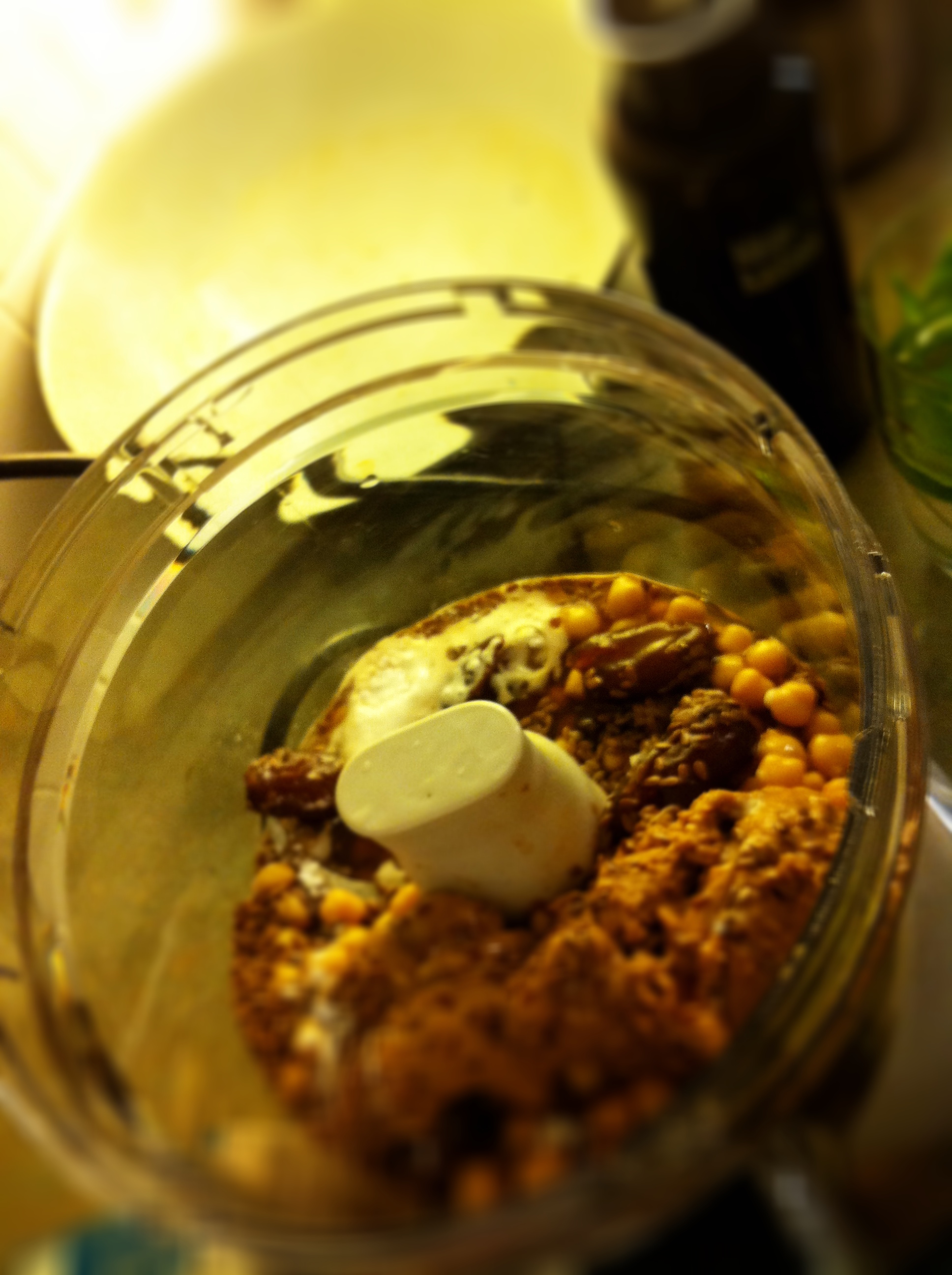 - Place in food processor (you can use your blender, magic bullet or blend by hand).