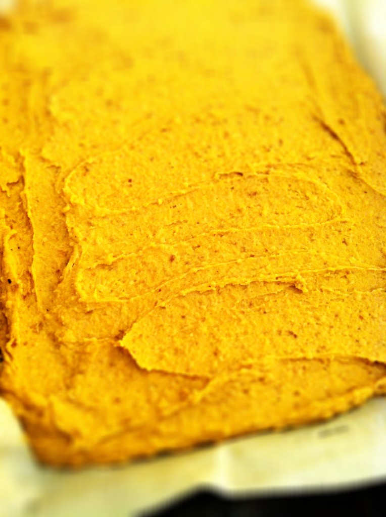 - Place mixture on a baking sheet covered with parchment paper. Smooth out evenly (if you do not use parchment make sure to grease the pan).